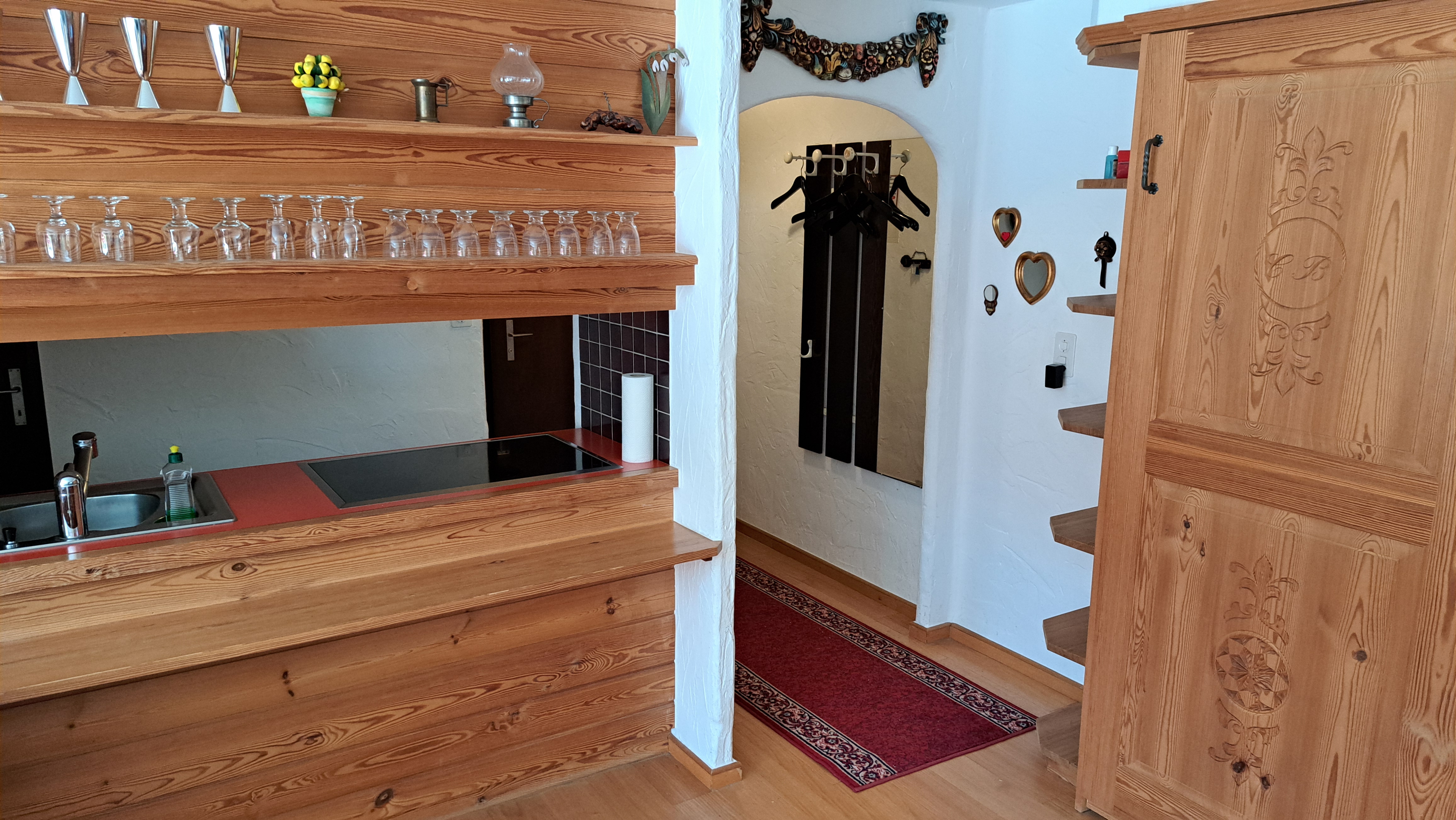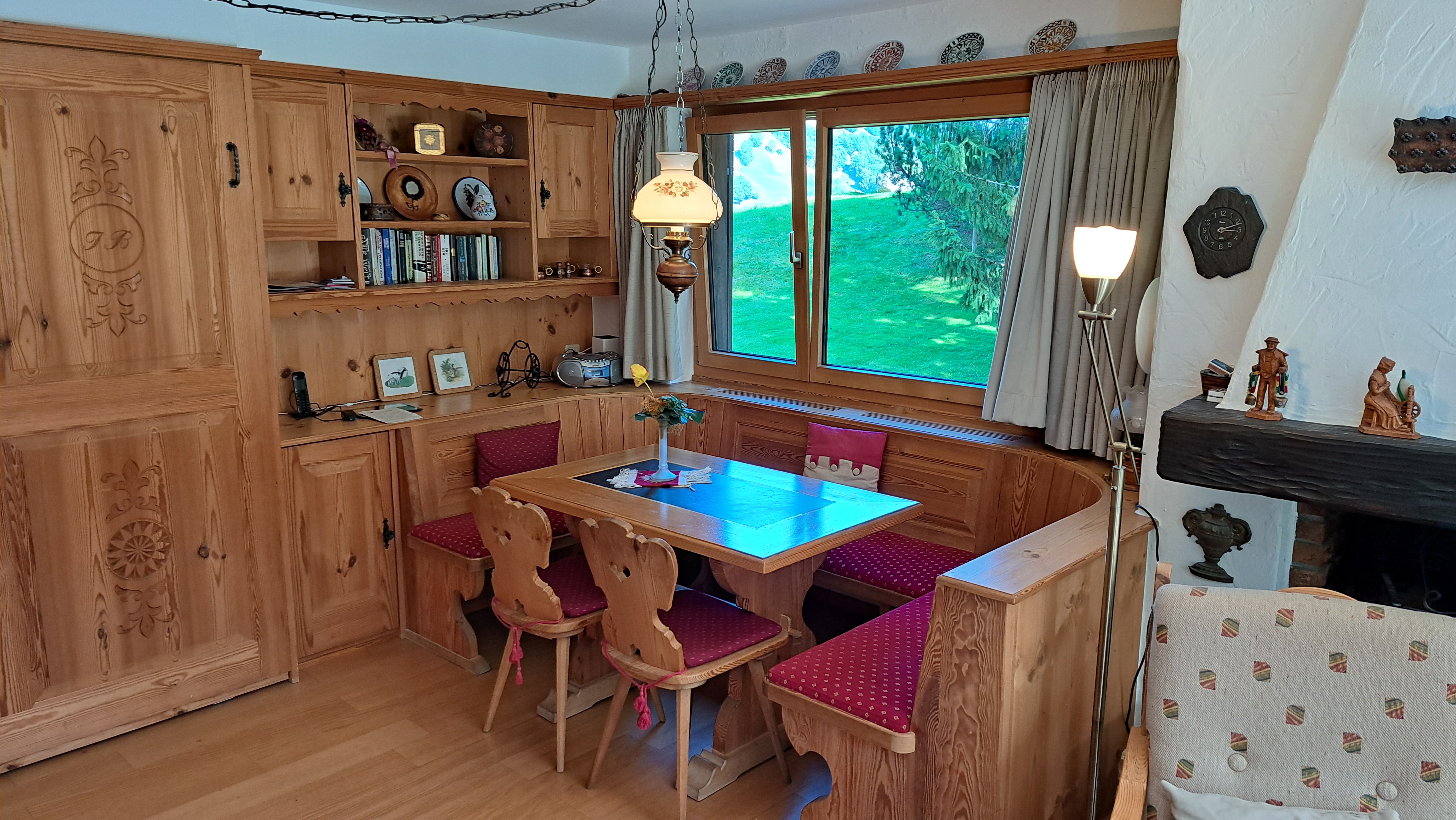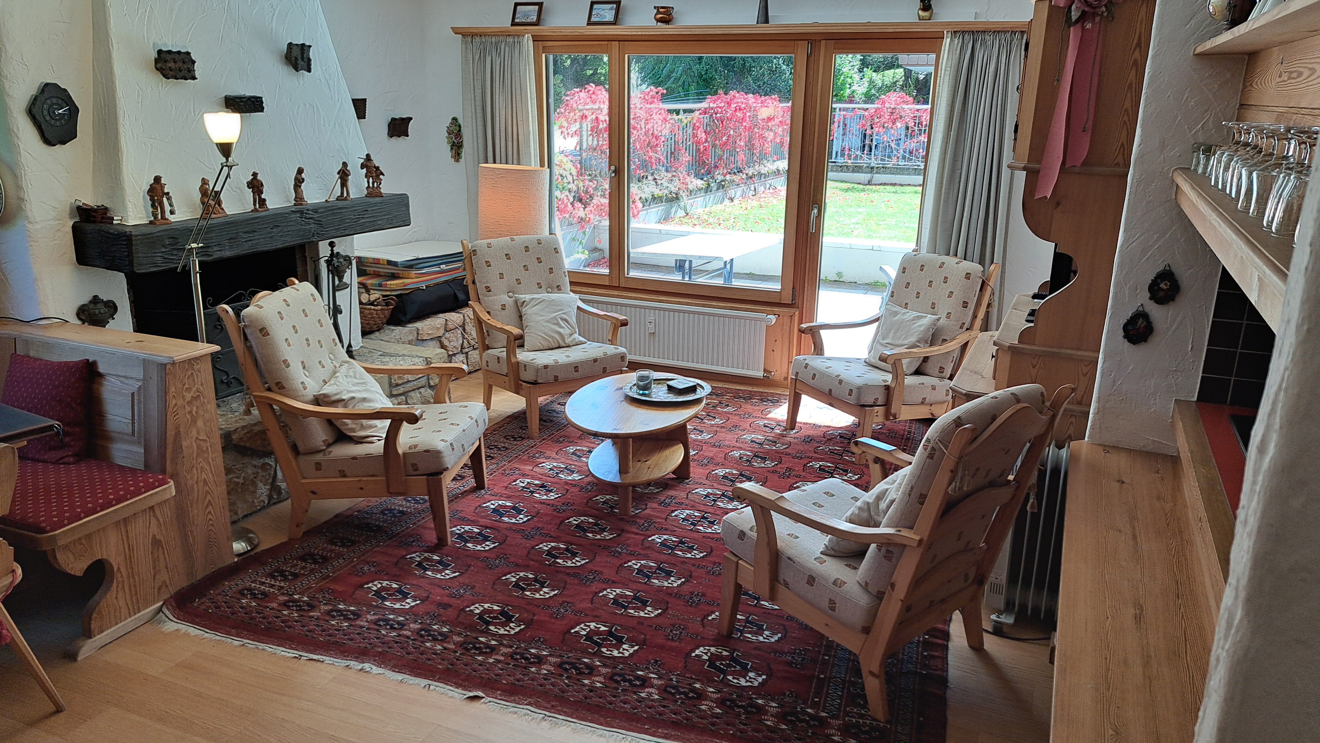 Ruhig gelegene im alpenländischen Stil eingerichtete 2 ½-Zimmerwohnung (51 qm) im Hochparterre; grosse Terrasse zum Süden mit 2 Liegestühlen, Tisch und Stühlen; grosses Wohnzimmer mit Einbaumöbel, Cheminée, Sesselgruppe, -Esseckbank, TV, Telefon, WLAN; Schlafzimmer mit Einbauschränken und Doppelbett; Küche mit Geschirrspülmaschine , 4-Plattenglaskeramikherd, Backofen, Kühlschrank mit Gefrierfach; Bad mit Doppelwaschbecken, Badewanne, WC, Spiegelschrank; Bettwäsche, Küchentücher, Frottéewäsche; im Tiefparterre Skiraum, Trockenraum mit Münzwaschmaschine und –trockner; reservierter Tiefgaragenplatz (direkt zugänglich);